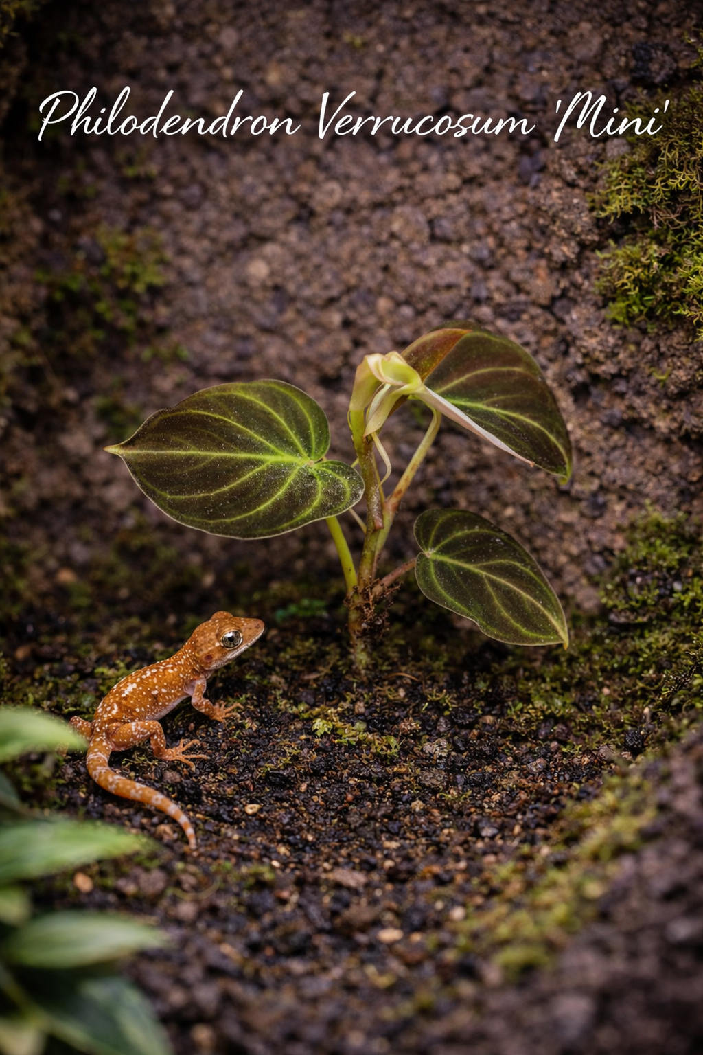 Thriving in bright, indirect light, Philodendron verrucosum ‘Mini’ rewards attentive care with increasingly deep, rich coloration. The more light it receives (without direct sun), the darker and more dramatic the foliage becomes, enhancing its velvety texture and overall visual impact. It prefers high humidity, warm temperatures, and a well-draining, consistently moist substrate, making it an excellent choice for bioactive setups and tropical enclosures.